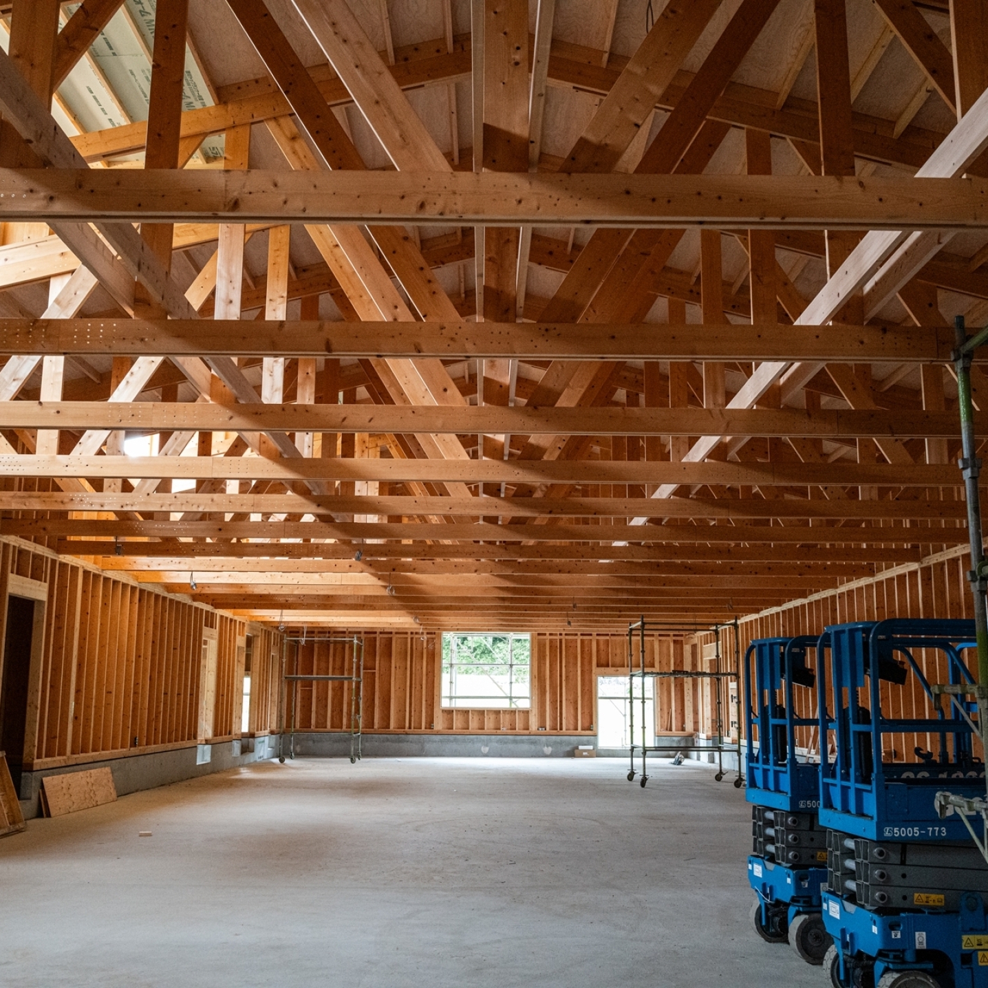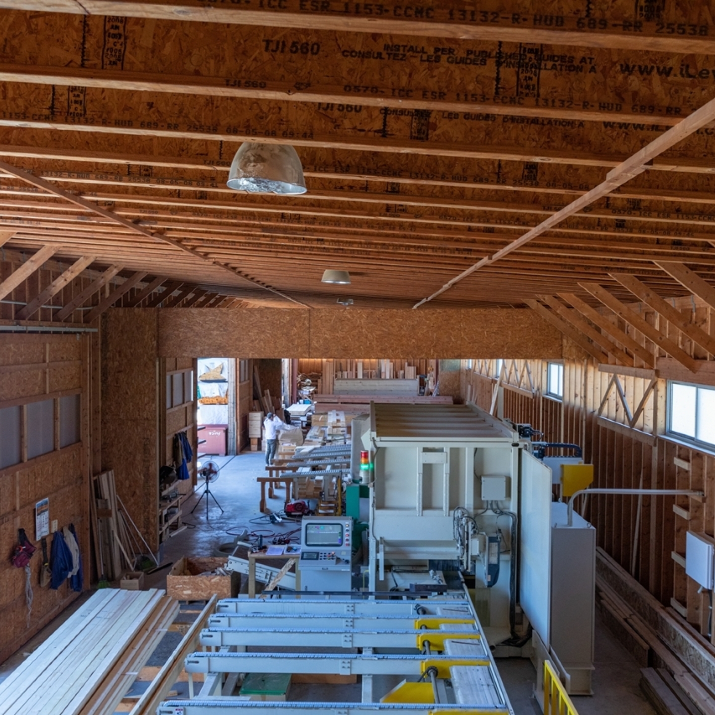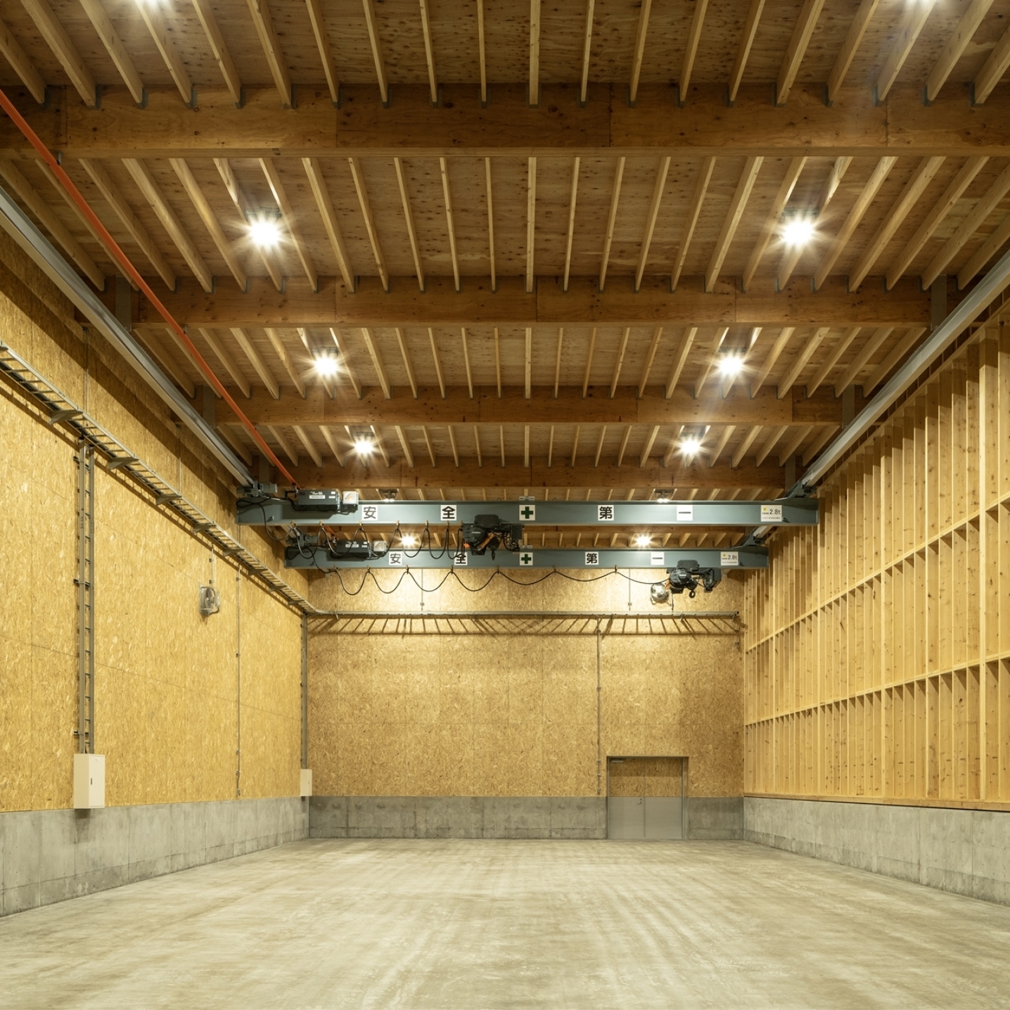 工場や倉庫、作業場には I-Joist・LVL・トラスを使用しており、実際に“大スパン空間”を体感していただけます。