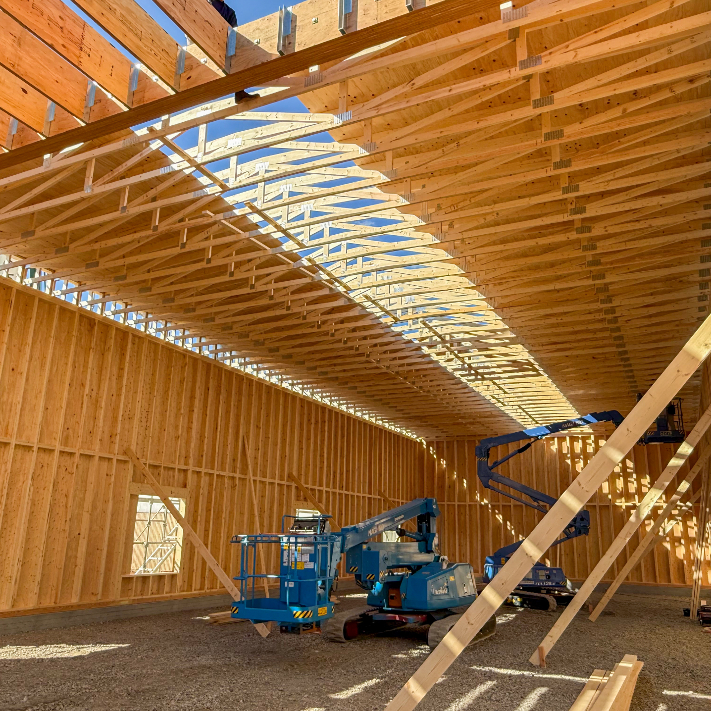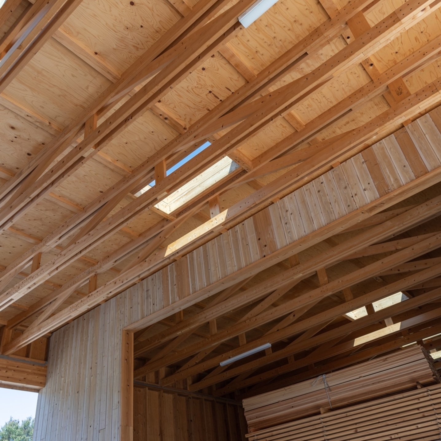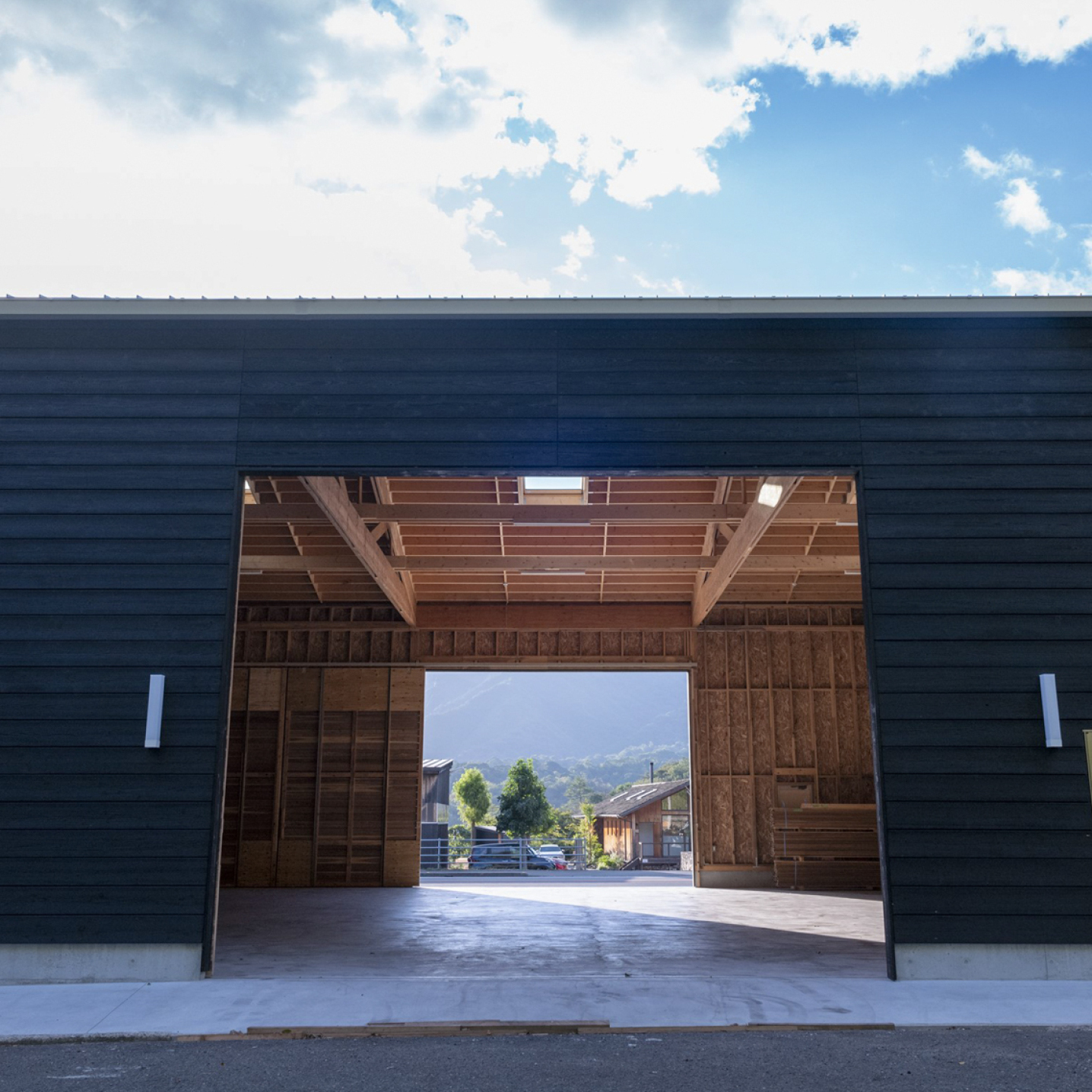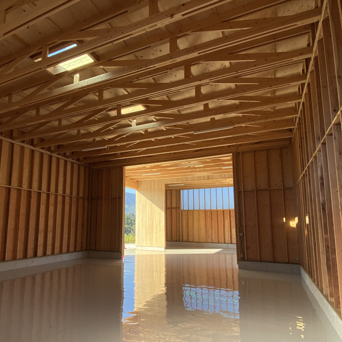 工場や倉庫、作業場には I-Joist・LVL・トラスを使用しており、実際に“大スパン空間”を体感していただけます。