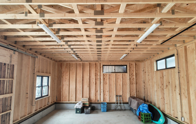 愛媛県宇和島市にて、スパン7mのネイルプレートトラスを用いた農業用倉庫が完成しました。 工法には枠組壁工法を採用しています。