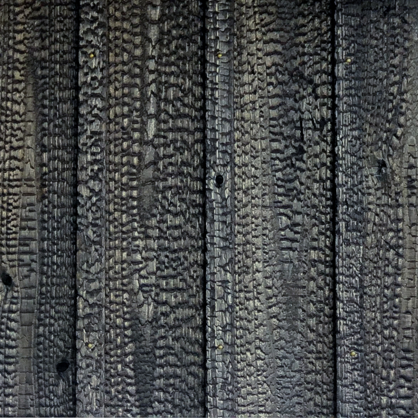 焼杉(焼き杉板)は、杉板を焼いて表面を炭化させた商品です。表面の炭化層が、板の劣化を遅らせます。