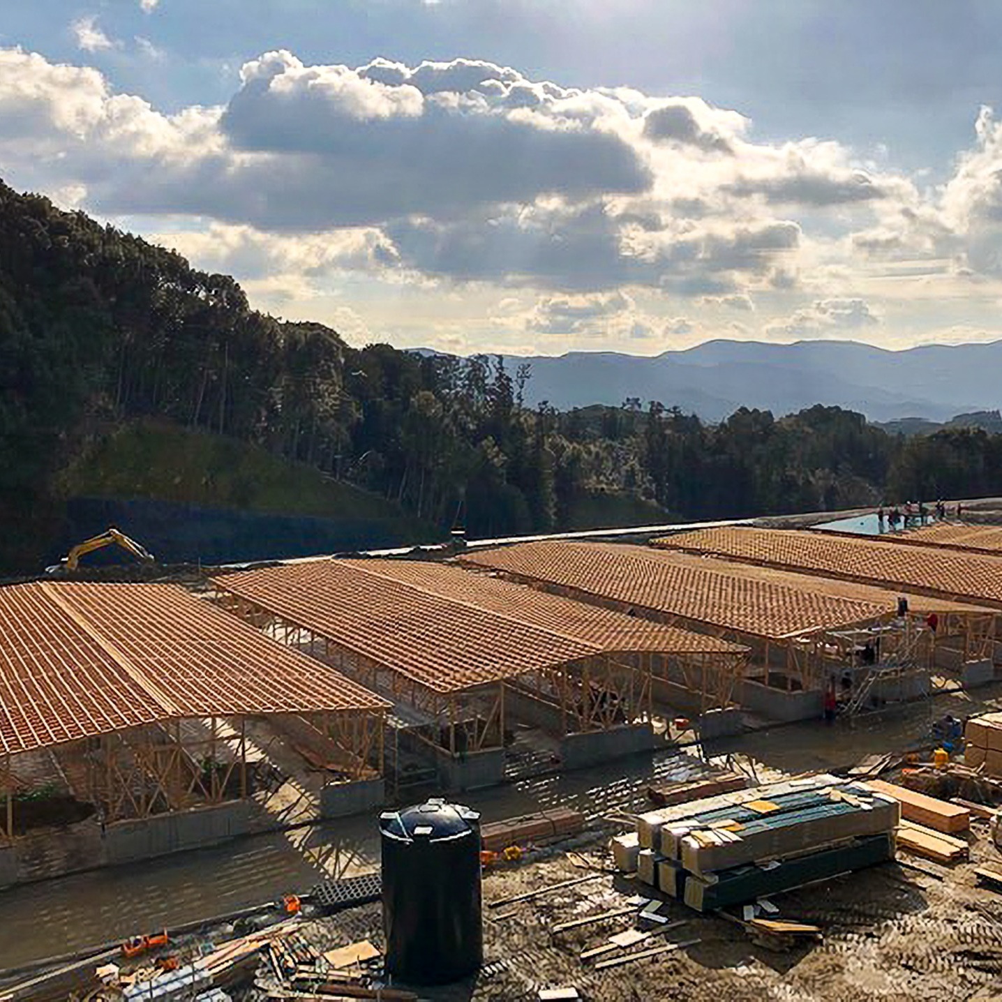 共栄木材がある『三秋プレイス』では、様々なタイプの美しい大きなスパンの木造倉庫・工場を見学可能です。