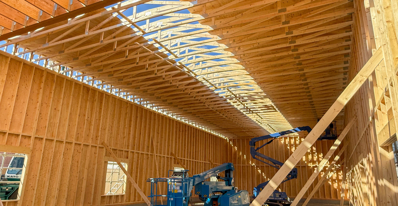 岡山県で全長約26mの桧トラスを使用した木造工場【②搬入・上棟編】