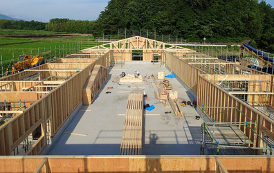 約22m×44mの大スパン木造工場、その上棟の様子をご紹介します。