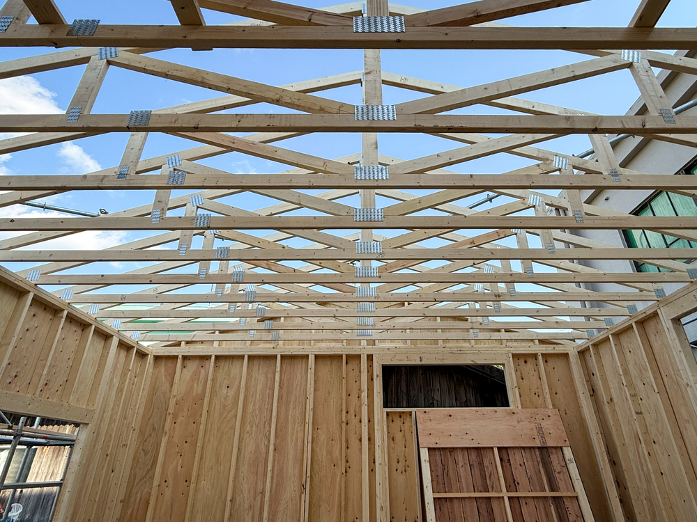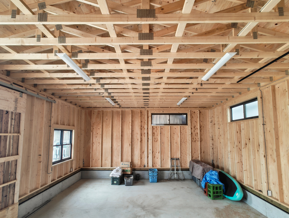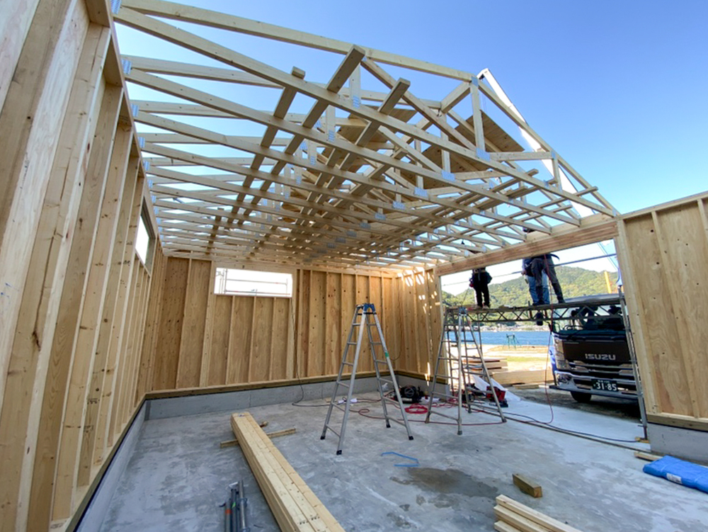 愛媛県宇和島市にて、スパン6mのネイルプレートトラスを用いた農業用倉庫が完成しました。
