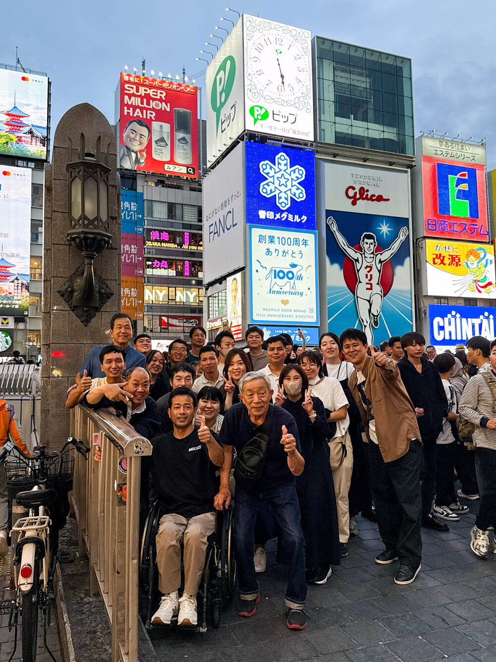 1日目、大阪観光 グリコの前で記念撮影