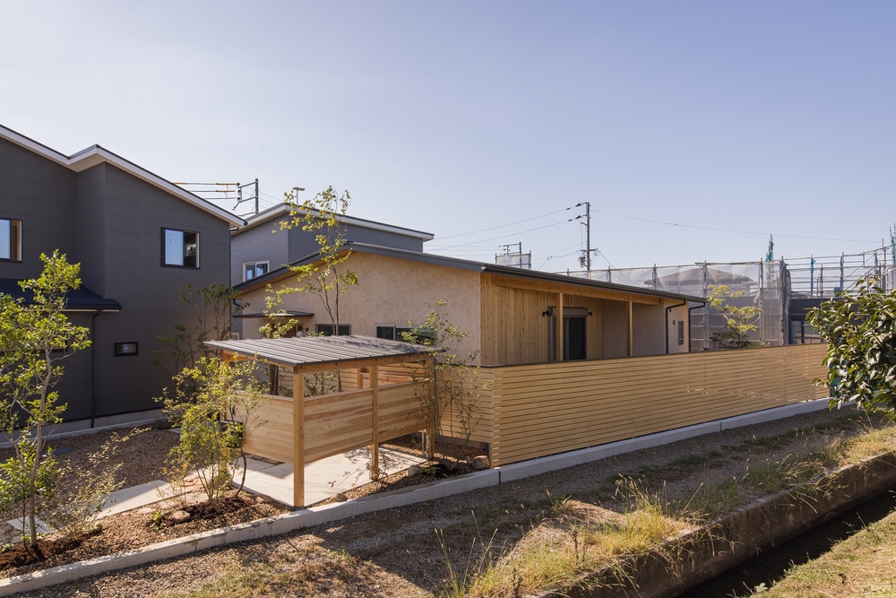 フェンス:ヒノキクリアフェンス 外壁:杉 ボード&バッテン