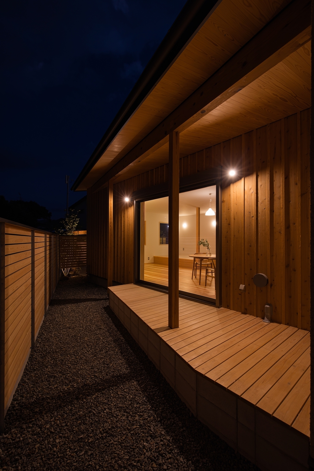 デッキ:ヒノキクリアデッキ 外壁:杉 ボード&バッテン
