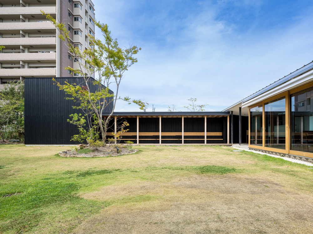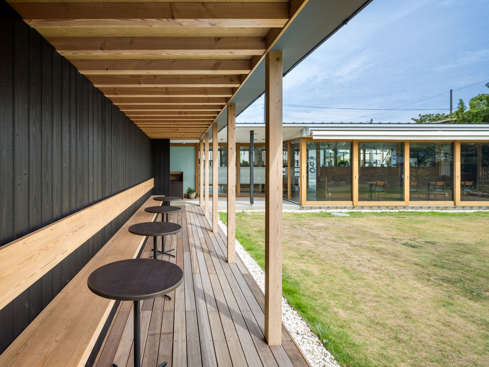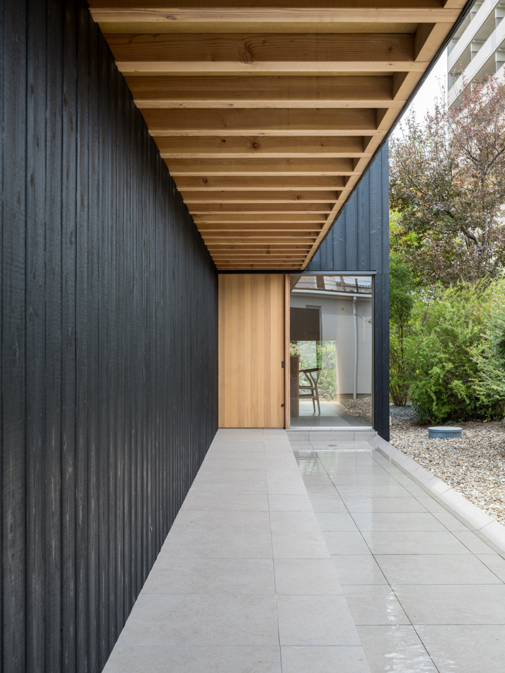 落ち着きある佇まいの店舗に、焼杉特有の陰影のあるテクスチャが調和しています。