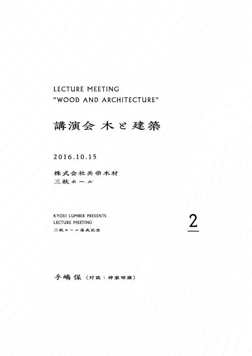 10月15日、三秋ホールの落成を祈念して、三秋ホールにて、設計をして頂いた手嶋保さんを招いて、講演会を開催します。今回の講演会の際には、ゲストとして、岡山の建築家・神家昭雄さんも来て頂くことになり、第二部では手嶋さんと神家さんの対談もあります。そしてその後は、講師を交えた懇親会を開催します。木材の利用や建築のディテールに、刺激を頂ける講演会になるよう準備を整えていきますので、ご来場をお待ちします。