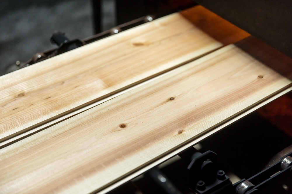 For Yakisugi, cedar boards made from large-diameter logs that are difficult to use as structural columns are selected.