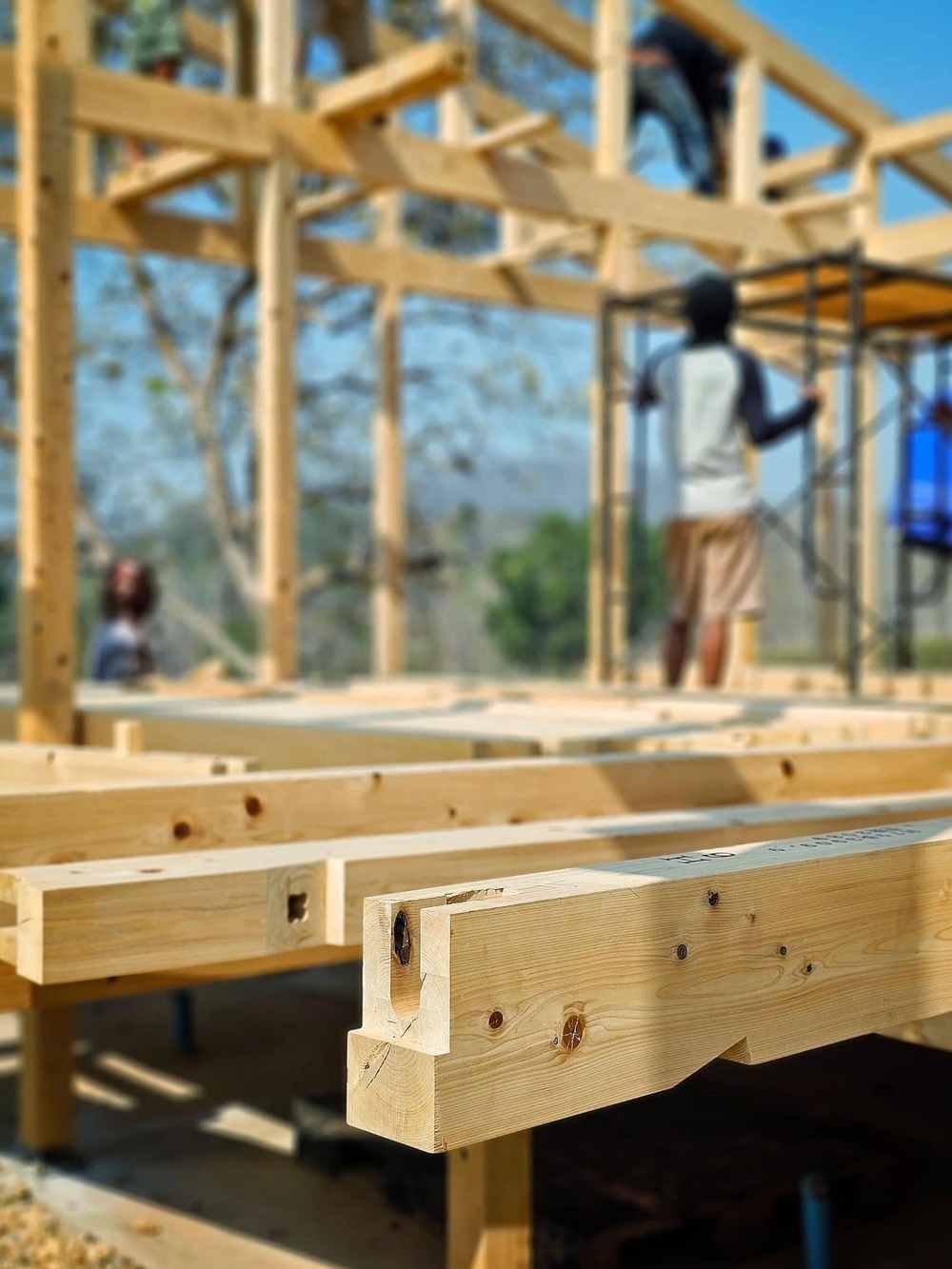 We can offer HINOKI as a structual material with pre-cut system & design.