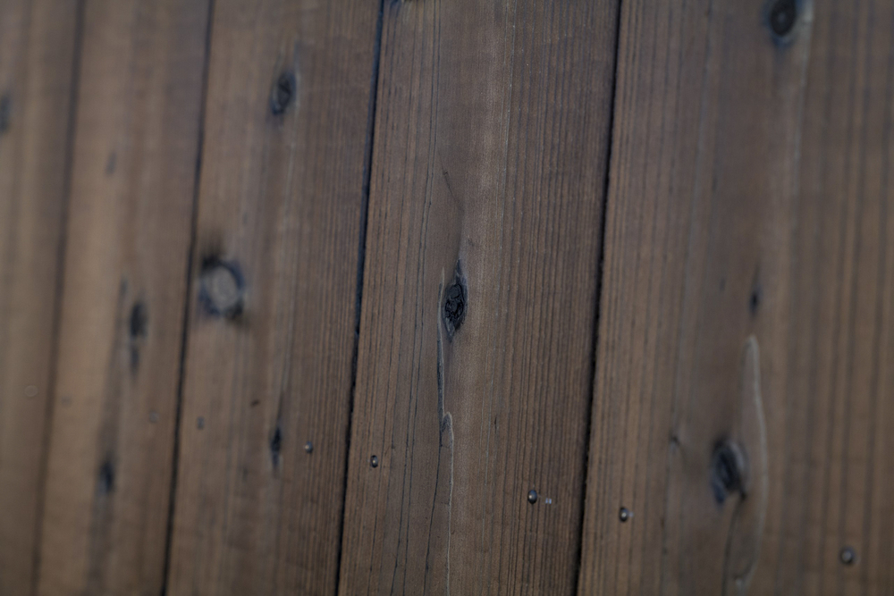 経年変化は、環境によって大きく変わります。美杉は表面の炭をブラッシングしている為に、クロのような炭付きの焼杉よりも目に見えて経年変化による色の変化が大きく、紫外線や雨にさらされる部分はシルバーグレーに変色し、雨に当たらず紫外線にのみ当たる部分は、飴色に変色しています。また、シルバーグレーに変色しても冬目の部分は黒く残り、経年変化した後でも焼杉の風合いが残ります。