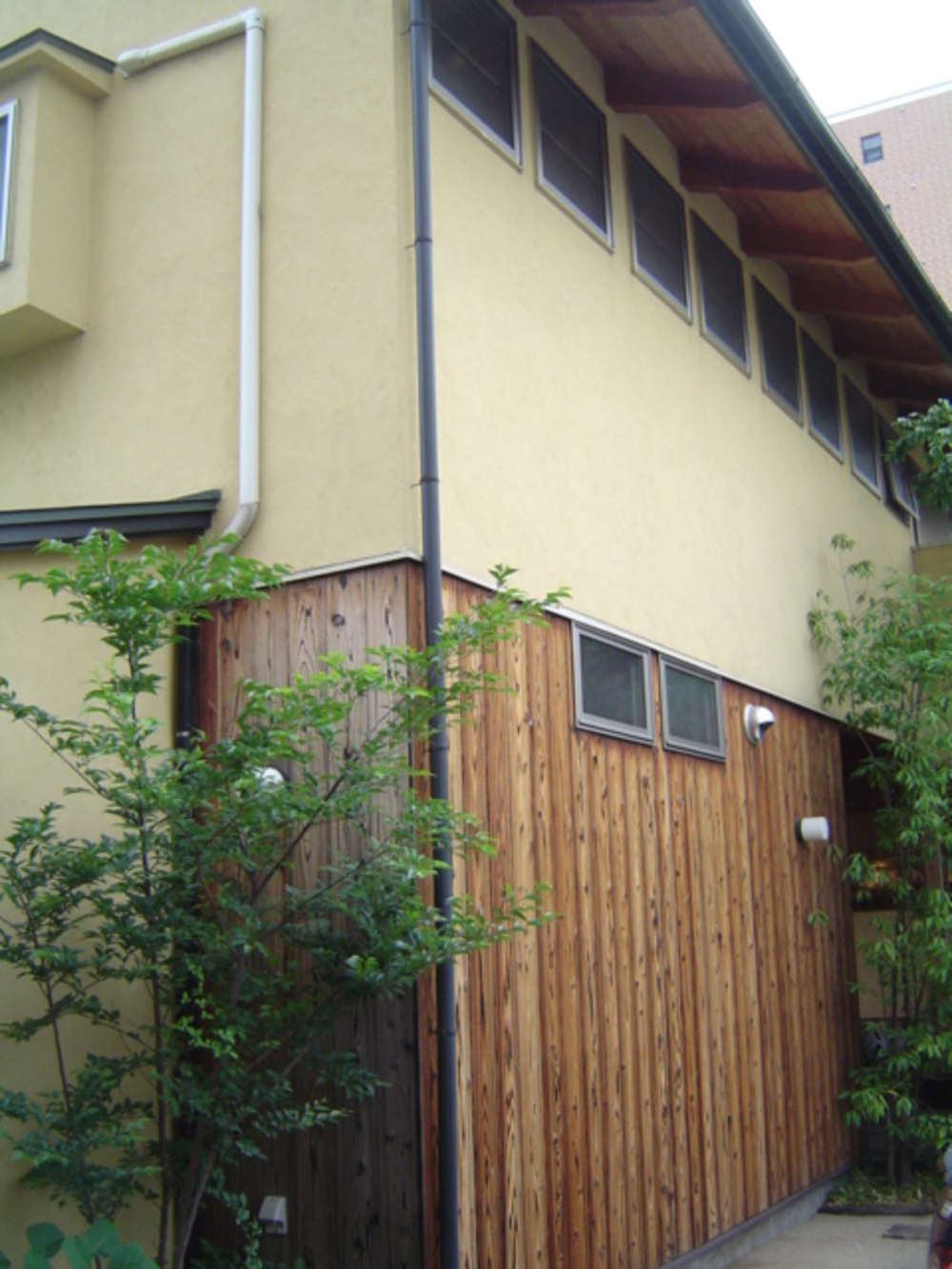 上記の写真は、弊社がお世話させていただいた松山市内の物件で施工後約5年経過した南側と西側の美杉です。