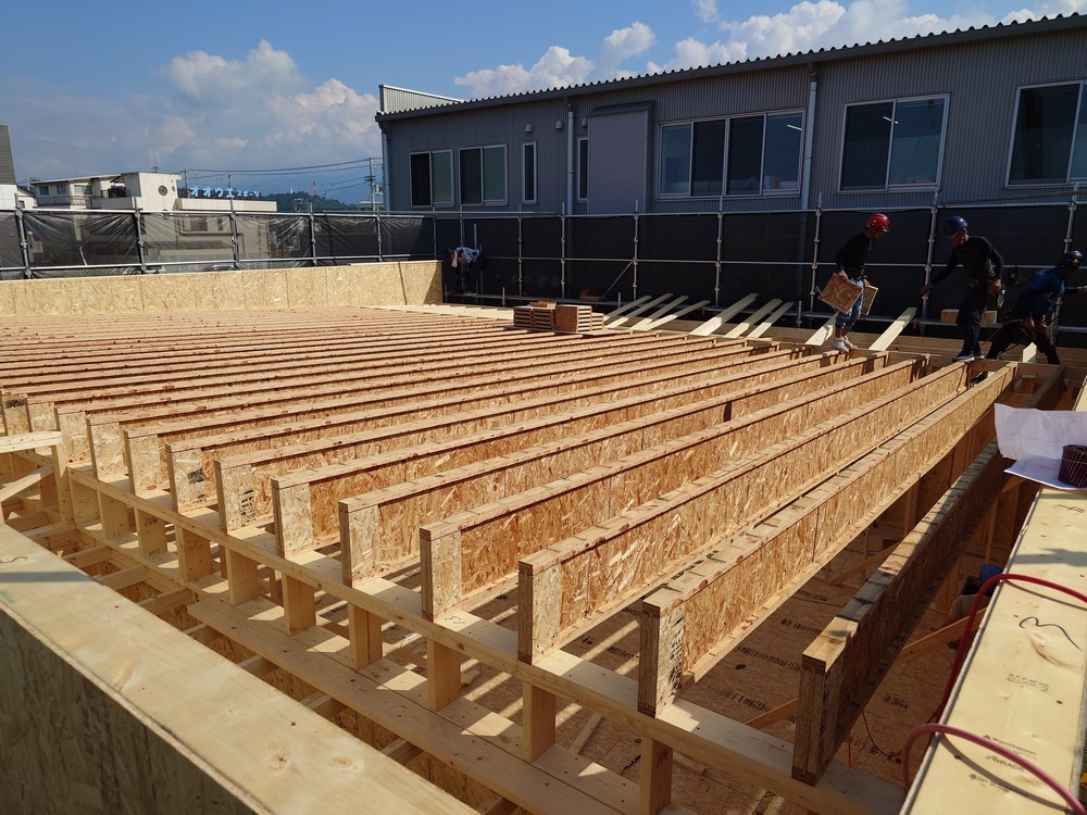 共栄木材ではRoseburg社のRFPI-Joistを在庫で保有しており、プレカットや長さカット加工、保管、積込が可能な専用工場を保有しています。また、三秋プレイス敷地内に自社工場を複数Iジョイストを用いて建築しており、随時見学も可能です。