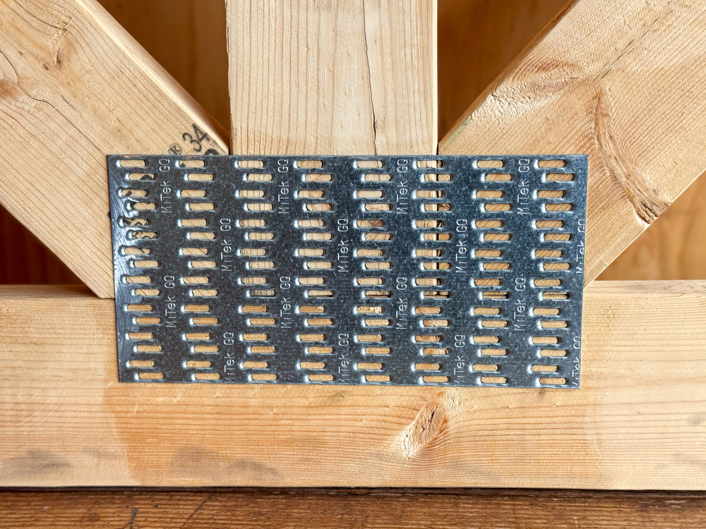 ネイルプレートトラス(=金物接合木質トラス / Metal Plate Connected Wood Truss)とは、歯付きの薄鋼板(ネイルプレート)を部材交点の両面から圧入して接合するプレファブ木質トラスのことです。
