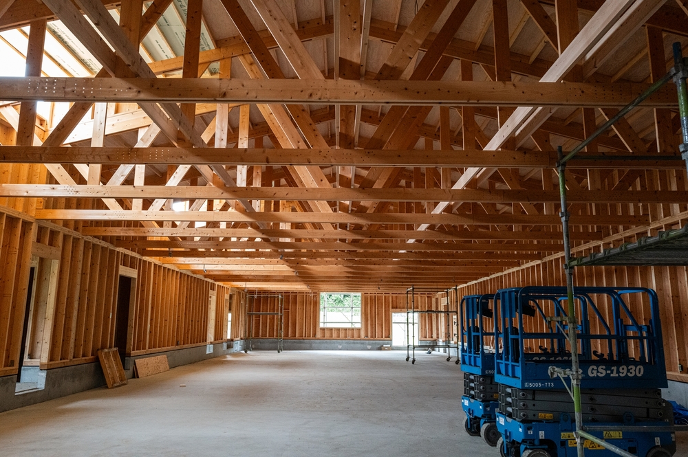 用途や荷重条件により設計は異なりますので、計画段階でのご相談が重要です。(桧ランバー材の確保に時間が掛る場合があります。)建て方の手配や、工務店さんのご紹介もできます。