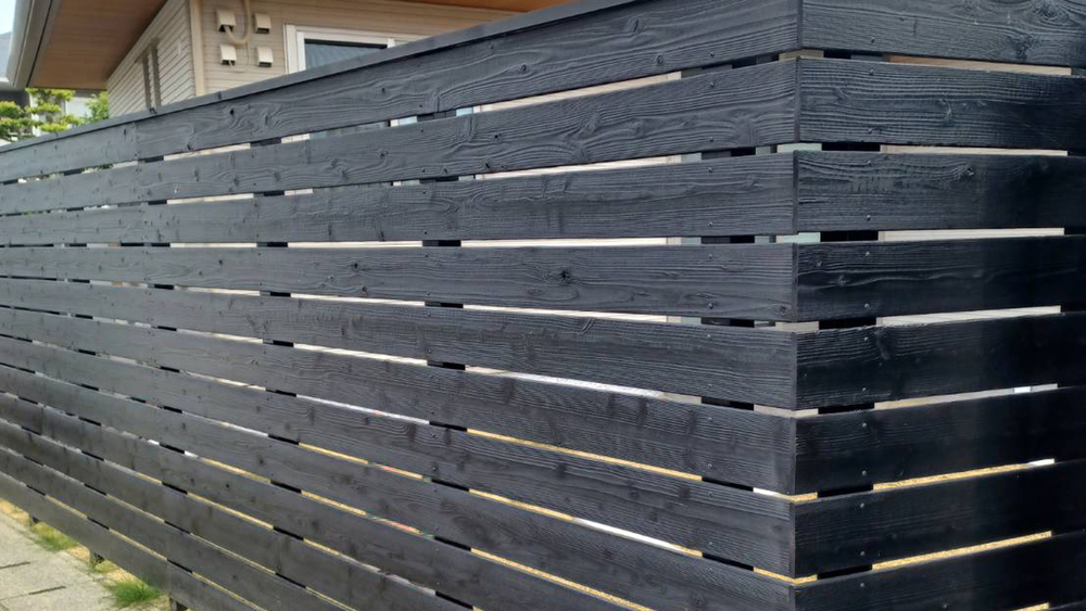 左:杉プレナー仕上モダンブラック塗装、右:焼杉モダンブラック