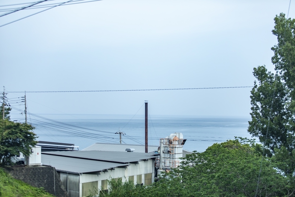 焼杉工場は本社から車で15分、海の見える駅として有名な『下灘駅』のすぐ近くにあります。