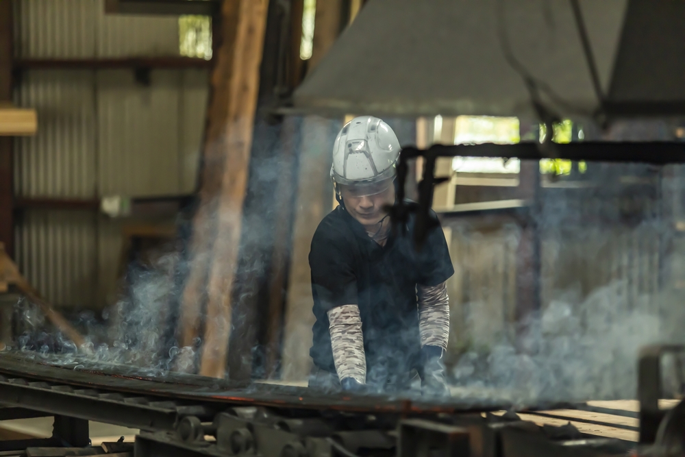 共栄木材が焼杉の工業生産を開始してから約50年。より品質の高い焼杉を目指し、細かなところに目をつけながら日々改良を繰り返してきました。